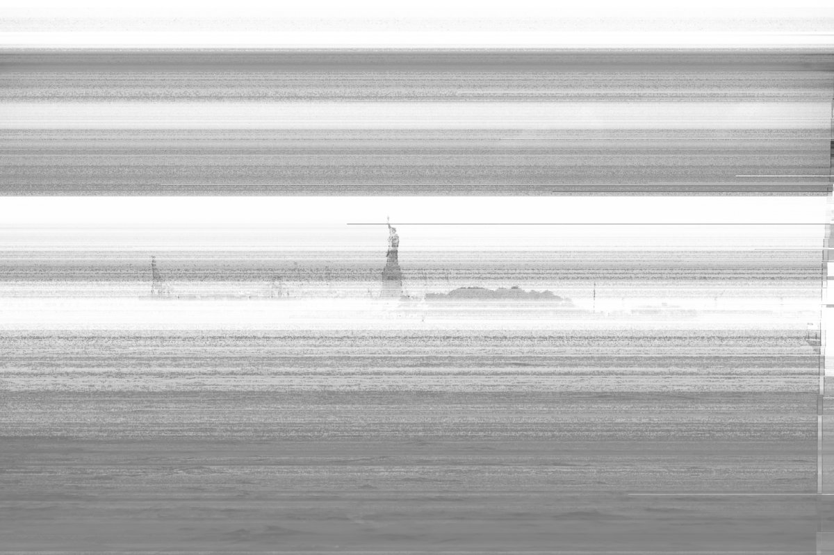 La Statue of Liberty — symbole de stabilité, d’idéal — devient ici instable, fragile, presque fantomatique.